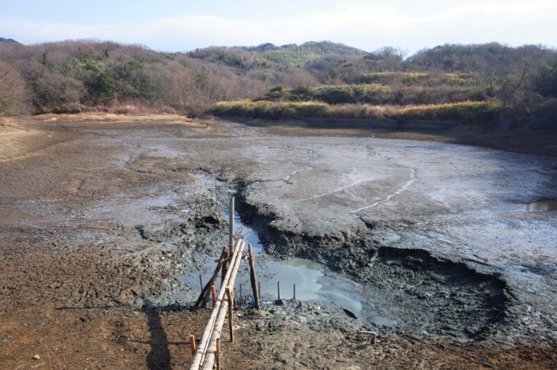 かいぼりは、農閑期の冬に池の水をぬいて、外来魚を捕まえたあと泥を川に流す作業のこと。淡路島では泥さらえ、池干しとも呼ばれてます。むかしは農家の人が総出でしてたけど、最近では少なくなりました。池の泥にはミネラルなどの栄養分が含まれて、海に流れることで養殖のりの色づきが良くなるなど漁業にも影響があるそうです。淡路県民局から学生に手伝ってもらえないかと声をかけていただいて、1年生のスタディーツアーになりました。淡路信用金庫の皆さんも参加くださって、年に一度の恒例行事になってます。