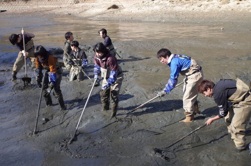 泥にまみれてリフレッシュ 池と心を大そうじ